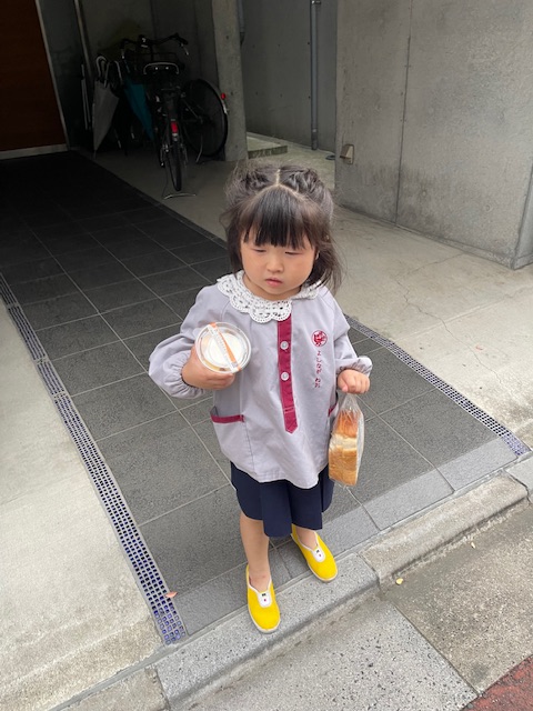 今日からまた幼稚園 英語の課外があります 朝起きて寝顔を見ていると 起こすのが可哀想ですがどうにか起こし フレンチトーストを焼いて朝ごはん そして登園です 今日は週初めで荷物がたくさん! そして登園!本当は預かりの予定でしたが 夜たけしくんの英...