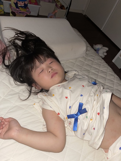 今日は火曜日夜中に何度か起きて トイレや体をかきむしったりしていて可哀想です! 今日は幼稚園休むと思いましたが 遅れて行きたいとのことで 自転車で向かいました 昨日から少し耳が痛い様子なので幼稚園から帰ったら行こうね!と でも少し行きたくない... -