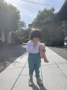 教室に入るギリギリまでベアちゃんとチュッチュをしていましたが、先生が来るとはいとちゃんとママに渡してくるのでえらいです。