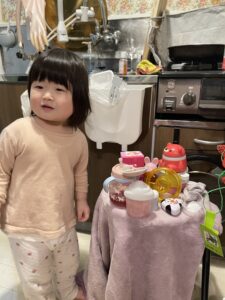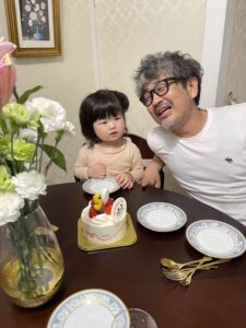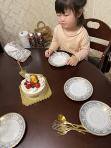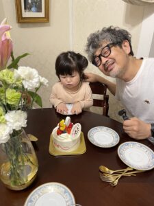 パパの1日早い誕生日お祝いをしました、happy birthday to you の歌も口ずさみ