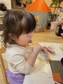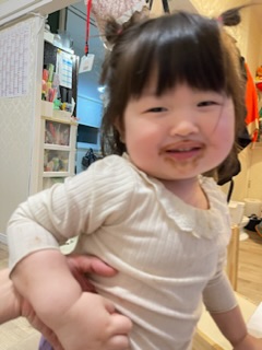 帰ってテンション高めでしたがパパわわ送ってる間にお眠で、お昼寝かな?と思いましたがどうにか持ち直しておやつタイムです!