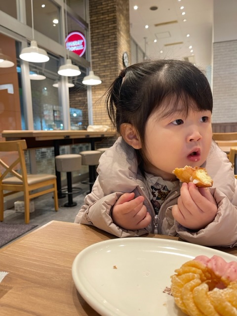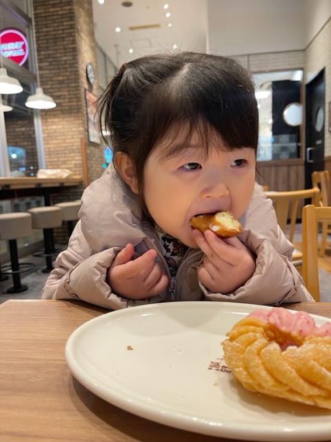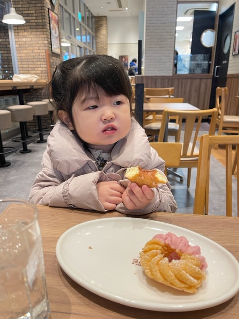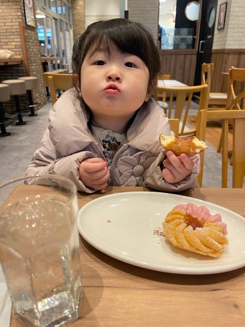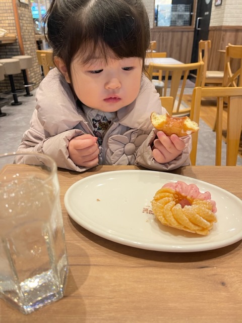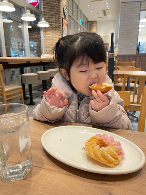 帰りにドーナツ屋さんで二人でお茶をしておやつを食べて
