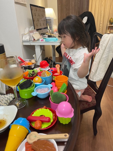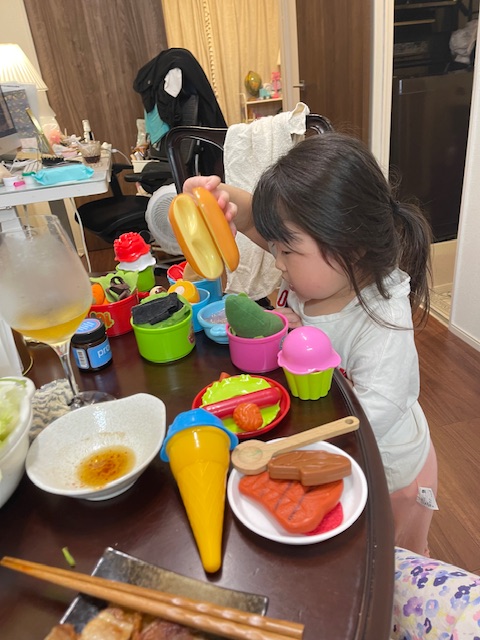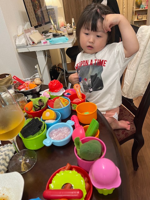 新生ちゃんが沢山おままごとで料理のおもてなしをしてくれて