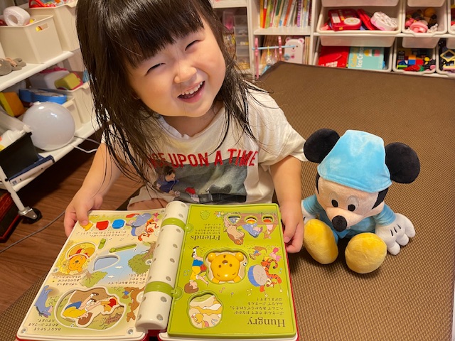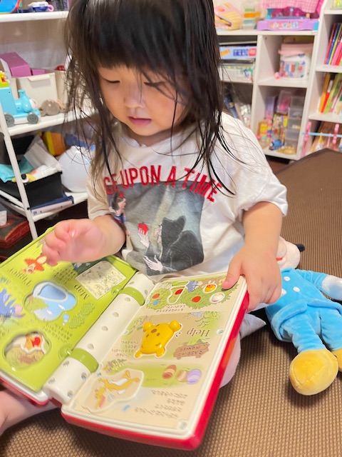 プーさんの絵本を新生ちゃんが読み聞かせしていました!