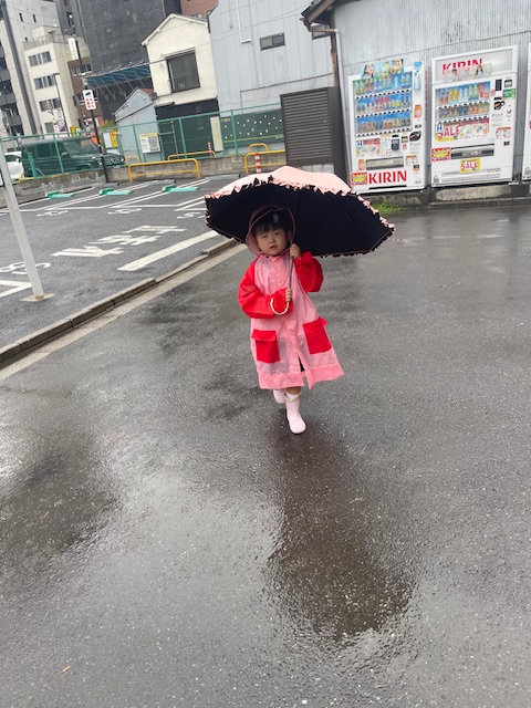 外は雨!また長靴を履き傘を持って雨なのに楽しそうです!
