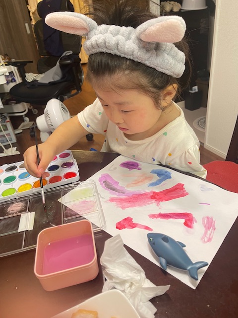 今日は絵の具を使ってお絵描きをしました!
