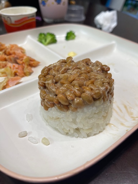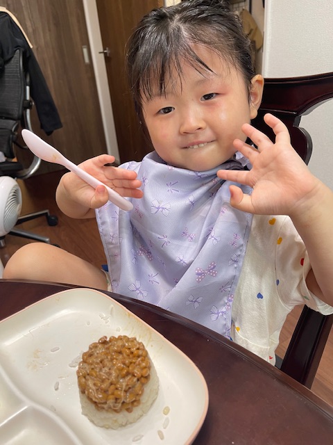 新生ちゃんは納豆のカップにご飯を乗せてプリンの様にひっくり返して